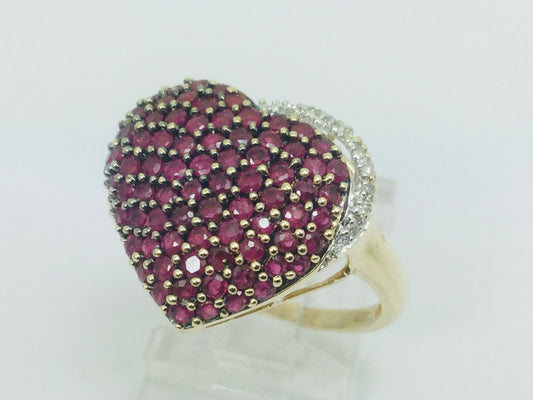 10k Yellow Gold Round Cut 1.6ct Ruby July Birthstone & 5pt Diamond Heart Cluster Ring