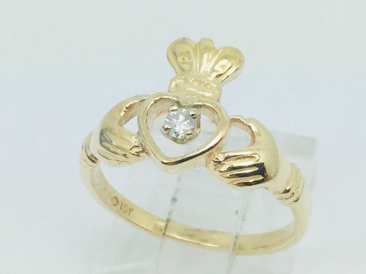 10k Yellow Gold Round Cut 5pt Diamond Irish Claddagh Heart, Crown and Hands Ring