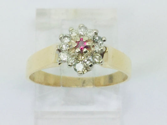 10k Yellow Gold Round Cut 5pt Genuine Ruby July Birthstone & 18pt Diamond Halo Ring