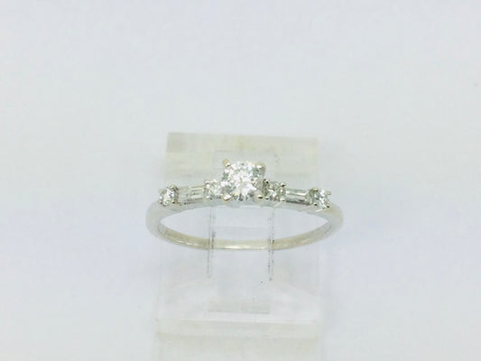 14k White Gold Round Cut 23pt Diamond with Round and Baguette Diamond Accents Ring