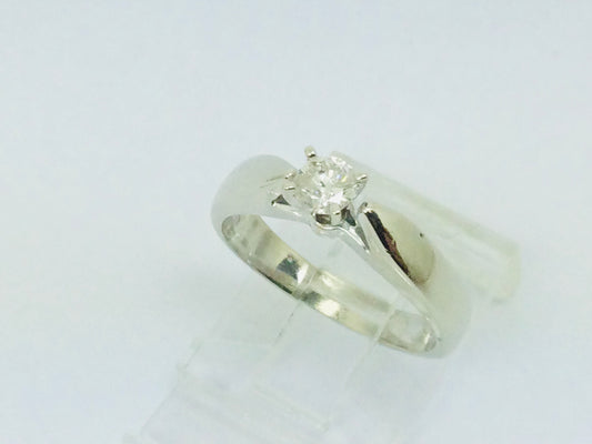 14k White Gold Round Cut 20pt Solitaire Diamond Ring