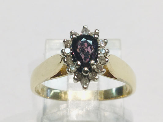 14k Yellow Gold Emerald Cut 50pt Purple-Red Topaz & 14pt Diamond Halo Ring