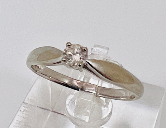 10k White Gold Round Cut 15pt Diamond Solitaire Ring