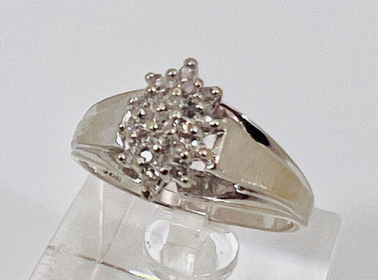 10k White Gold Round Cut 23pt Diamond Cluster Ring