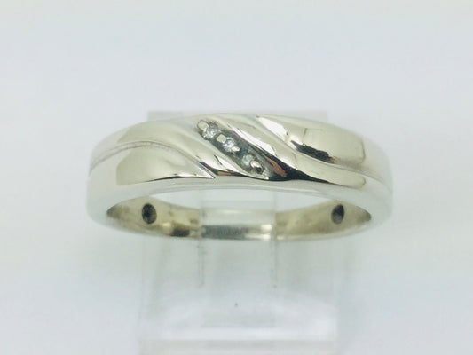 10k White Gold Round Cut 0.08ct Diamond Heart Band Ring