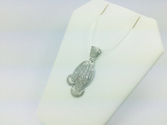 10k White Gold Round Cut 0.83ct Diamond Praying Hands Pendent