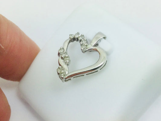 10k White Gold Round Cut 15pt Diamond Heart Pendent