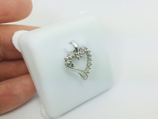 10k White Gold Round Cut 10pt Diamond Heart Pendent