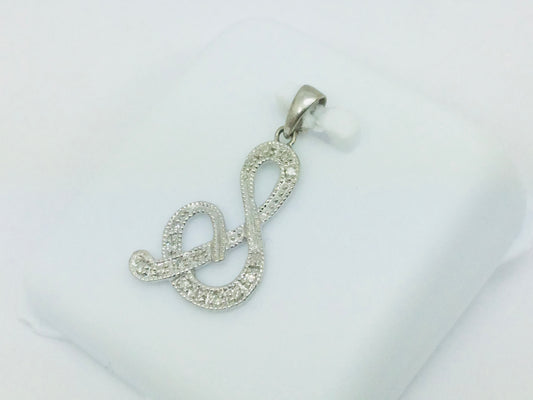 10k White Gold Round Cut 16pt Diamond Initial 'S' Pendent