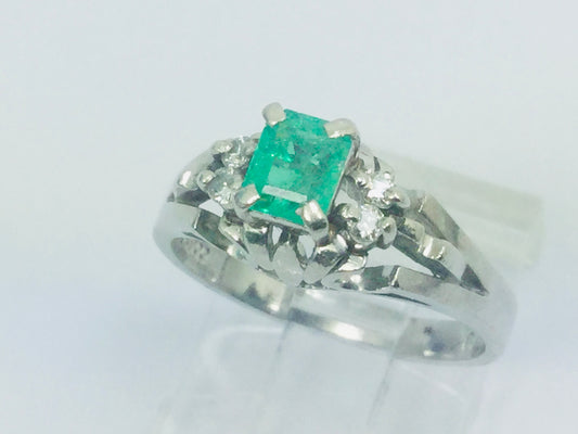 Platinum Emerald Cut 41pt Emerald May Birthstone & 8pt Diamond Ring