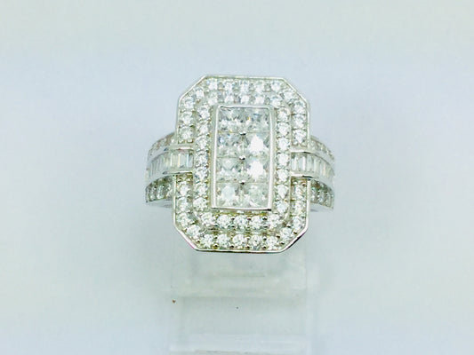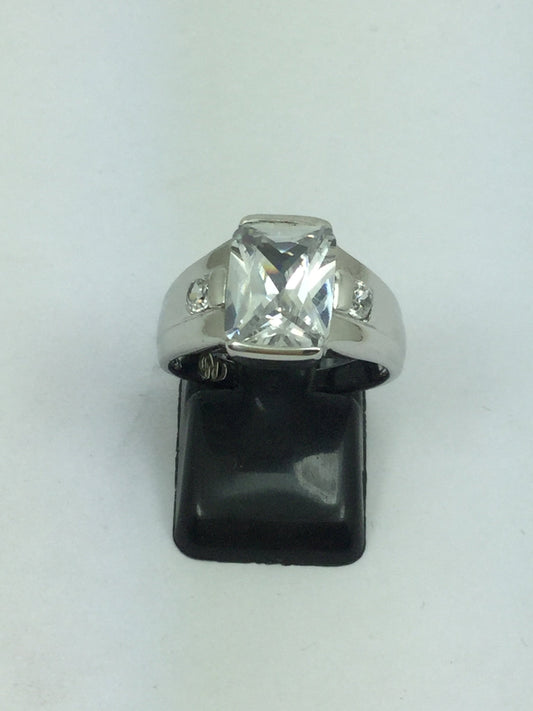 Rhodium Plated Sterling Silver Rectangular Faced CZ Ring