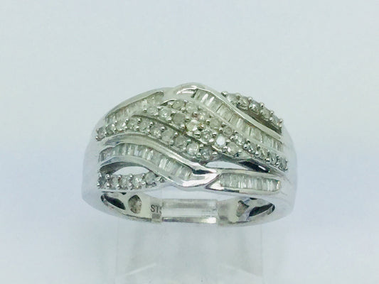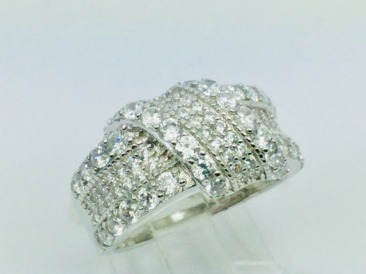 Rhodium Plated Sterling Silver Crossover CZ Ring