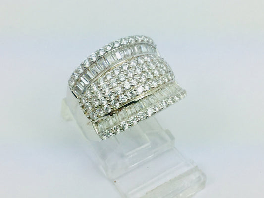 Rhodium Plated Sterling Silver Row Face CZ Ring