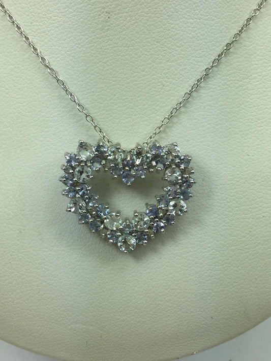 Silver 1.8 ct Aquamarine & Tanzanite Necklace