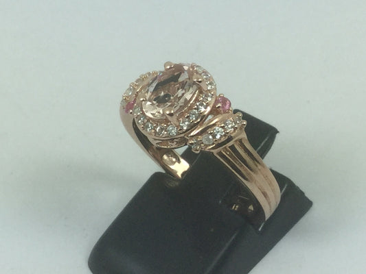 Silver Rose Gold Plated Cubic Zirconia & Rose Quartz Ring