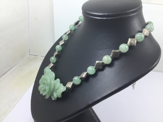 Silver Genuine Gemstone Adventurine Adjustable Necklace