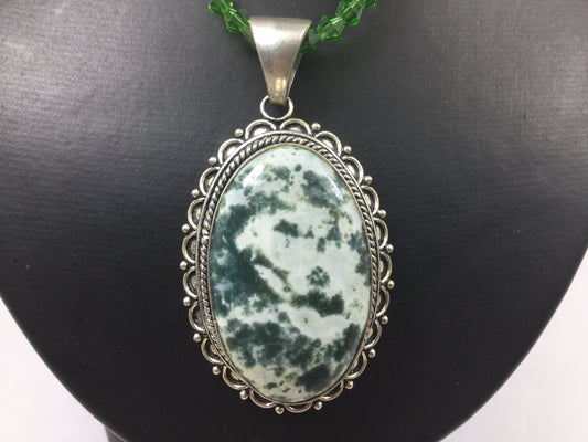 Silver Genuine Gemstone Moss Agate On A Beaded Necklace