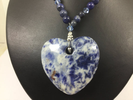 Silver Genuine Gemstone Sodalite Heart Shaped Adjustable Beaded Necklace
