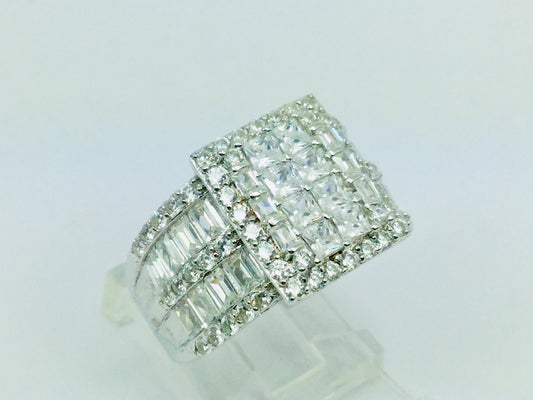 Rhodium Plated Sterling Silver Square Face CZ Ring