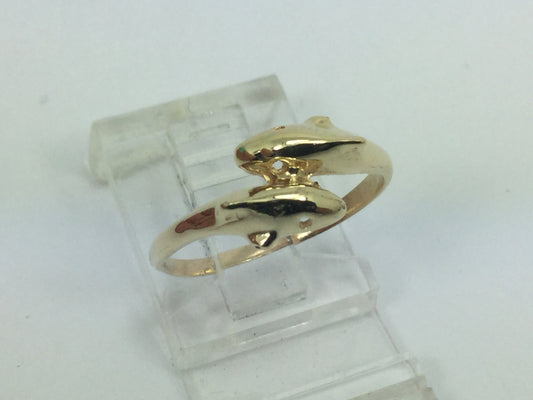 10k Yellow Gold Dolphin with Round Cut Sapphire and 8pt Diamond Necklace and Earring Set