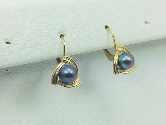 10k Yellow Gold Black Tahitian Pearl Earrings