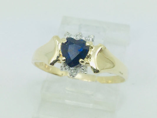 10k Yellow Gold Heart Cut 45pt Sapphire September Birthstone & 1pt Diamond Ring