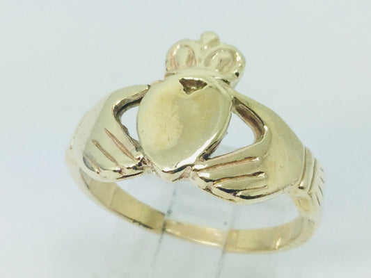 10k Yellow Gold Irish Claddagh Heart, Crown and Hands Ring