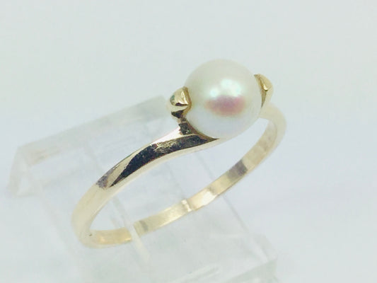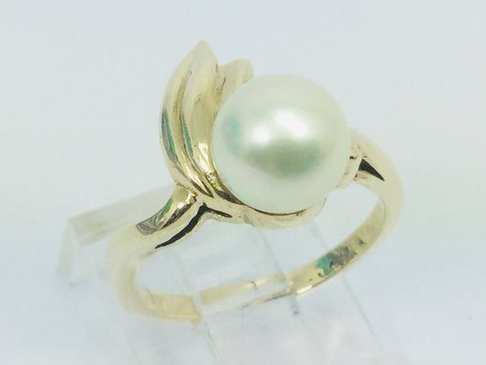 10k Yellow Gold Genuine Pearl June Birthstone Cocktail Ring