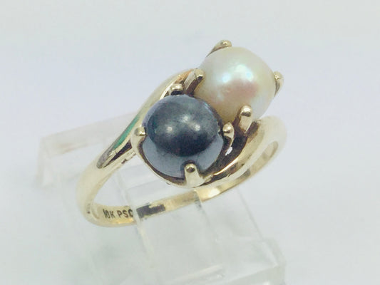 10k Yellow Gold Genuine White & Tahitian Black Pearl June Birthstone Ring
