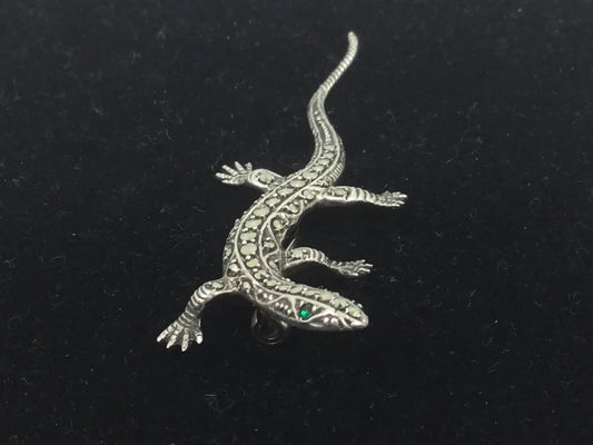 Vintage Silver Lizard Pin With Marcasite
