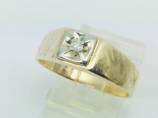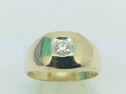 10k Yellow and White Gold Round Cut 10pt Diamond Solitaire Ring