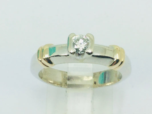 14k Yellow and White Gold Round Cut 14pt Diamond Solitaire Ring