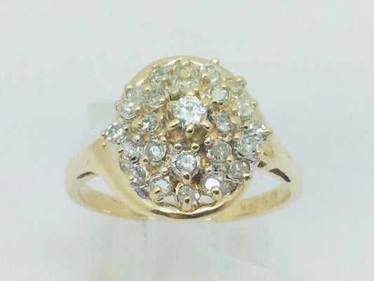 10k Yellow Gold Round Cut 0.25ct Diamond Cluster Ring