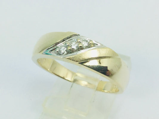14k Yellow & White Gold Round Cut 15pt Diamond Row Set Ring