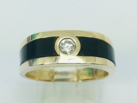 14k Yellow Gold Round Cut 25pt Diamond Solitaire & Black Onyx Ring