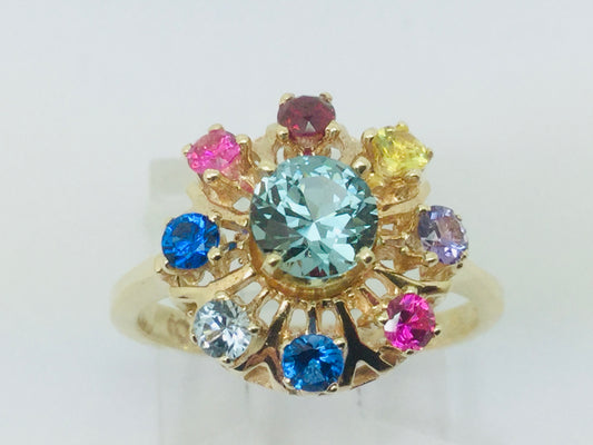 10k Yellow Gold Round Cut 9 Stone Family Ring