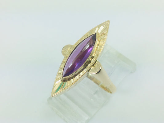 18k Yellow Gold Marquise Cut Cabochon Amethyst February Birthstone Ring