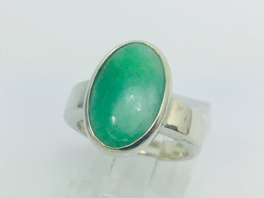 18k Yellow Gold Oval Cut Cabochon Jade August Birthstone Ring