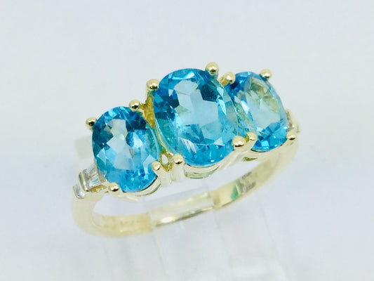 14k Yellow Gold Oval Cut Blue Topaz December Birthstone & Diamond Ring