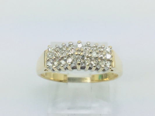 10k Yellow Gold Round Cut 27pt Diamond Cluster Row Set Ring