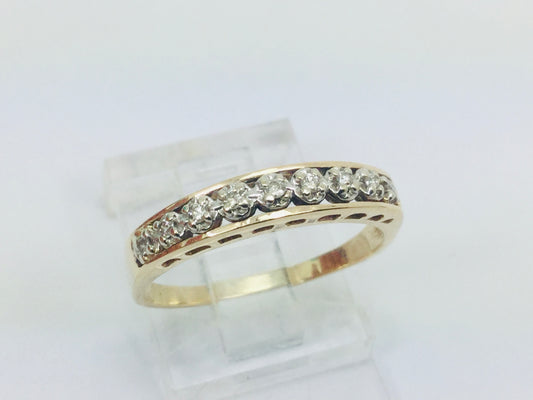 10k Yellow & White Gold Round Cut 0.13ct Channel Set Diamond Ring