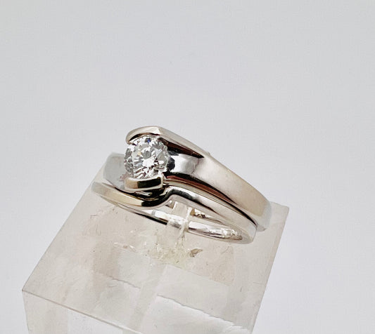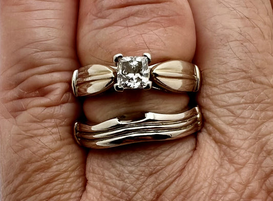 14k White Gold Princess Cut 46pt Diamond Solitaire Ring Set