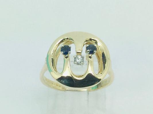 Stunning 10k Genuine Sapphire & Diamond Wave Pattern Ring