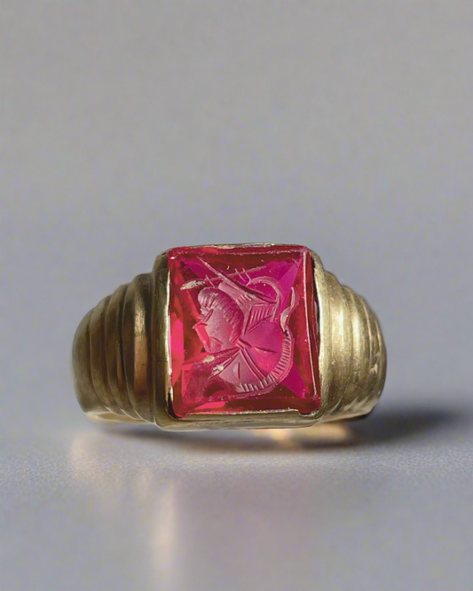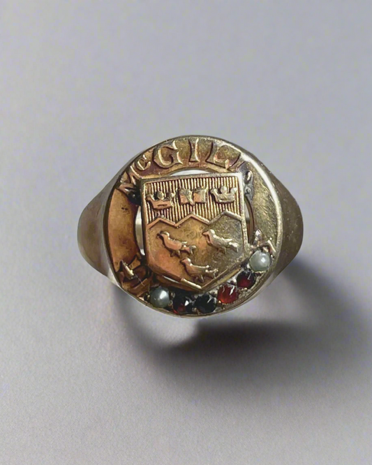 Vintage Birks 10K Yellow Gold "McGill" Garnet & Pearl Ring