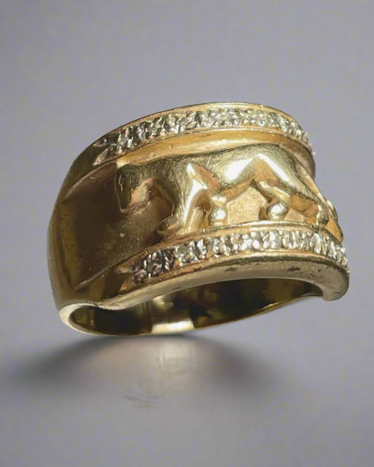 14K Yellow Gold Panther 18k Diamond Band Ring