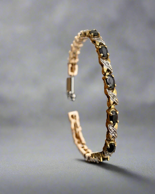 14k Gold 4ct Blue Sapphire & 16pt Diamond Bracelet