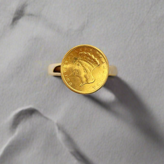 US of A - 21k Gold Coin on 14k Gold Band Ring
