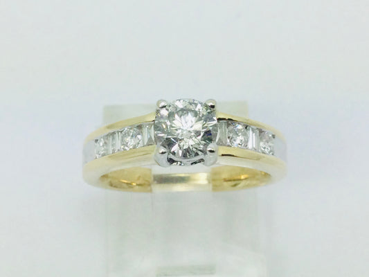 14k Yellow Gold Round and Baguette Cut 92pt Engagement Diamond Ring