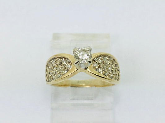 14k Yellow Gold Round Cut 5pt Diamond Illusion Set Ring