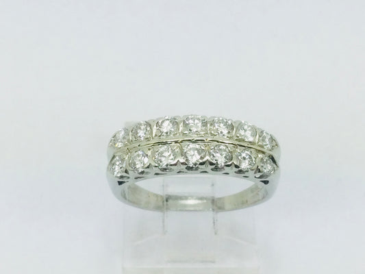 14k White Gold Round Cut 0.72ct Diamond Row Set Ring